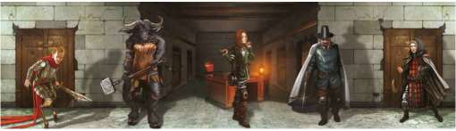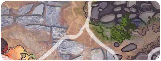 The board has two maps, the dungeon and the ruins, which have 42 spaces each. For your first game, we recommend playing in the dungeon. These symbols on the maps affect gameplay: