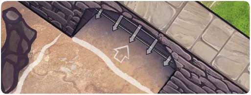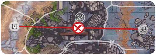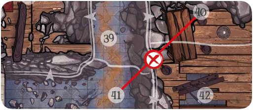 An arrow in a dividing line indicates a climb to higher ground. You must climb to enter these spaces, spending one additional movement to move in the direction of the arrow.