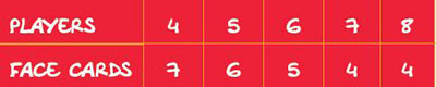 If you would prefer to play a game with more frequent matches, deal out one extra Face Card to each player at the start of the game. (There are only enough cards to do this in games with fewer than 8 players).