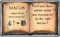 Magus: The warlock, who uses this spell, can acquire the top-most copper cauldron. To do so, the warlock pays the number of ingredients shown on the card, but need not match the types shown. He may not pay an extra ingredient to also take a potion vial.