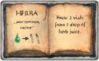 Herba: The warlock, who uses this spell, places one green drop back into the supply and takes for it from the supply two potion vials, which he places in his play area.