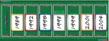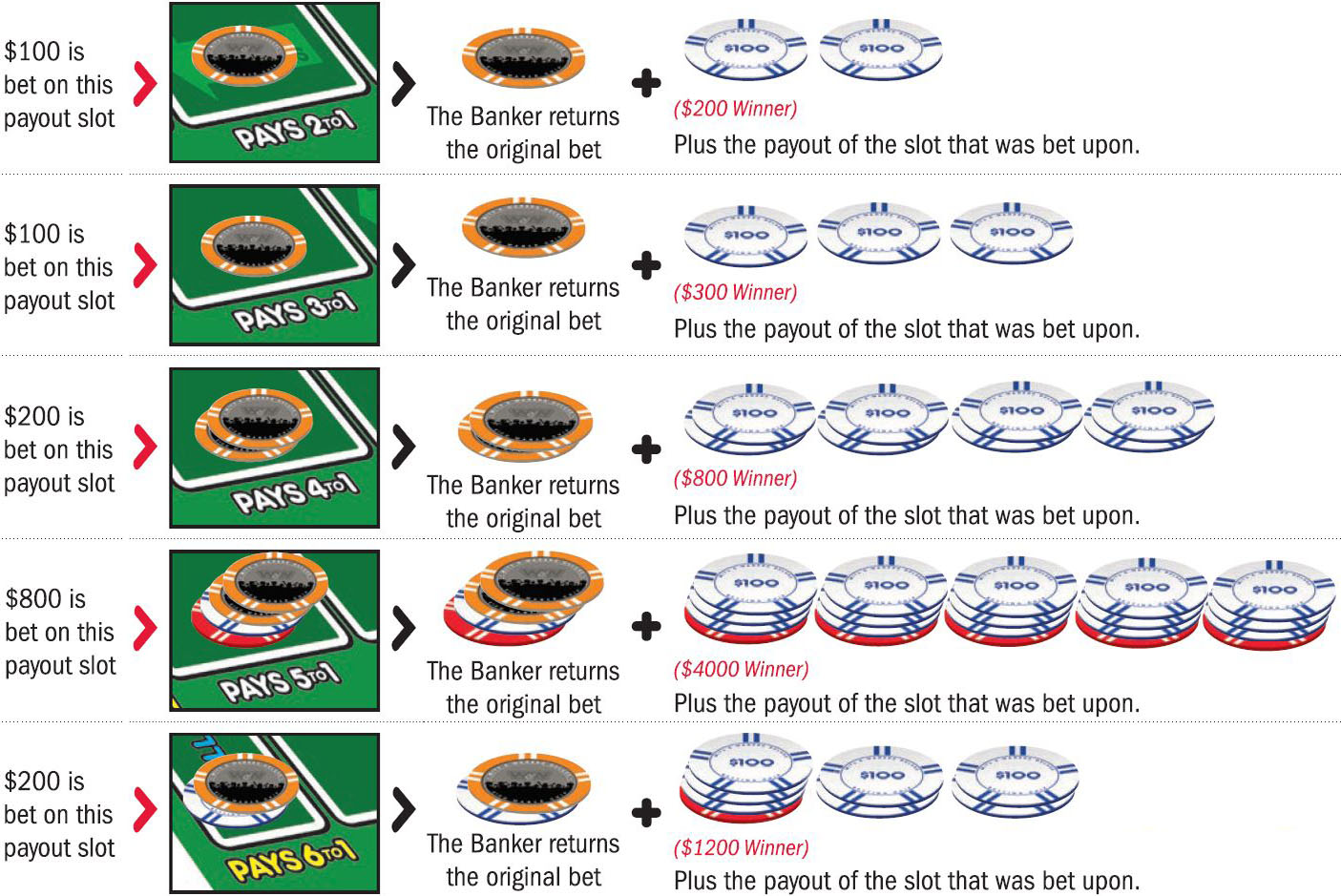The Banker pays Cardboard Chips to each player (or team) who correctly bet on the winning slot as shown below: