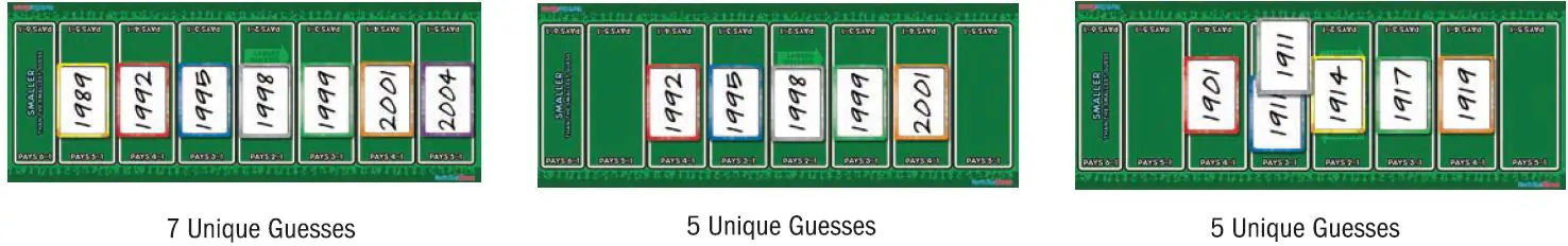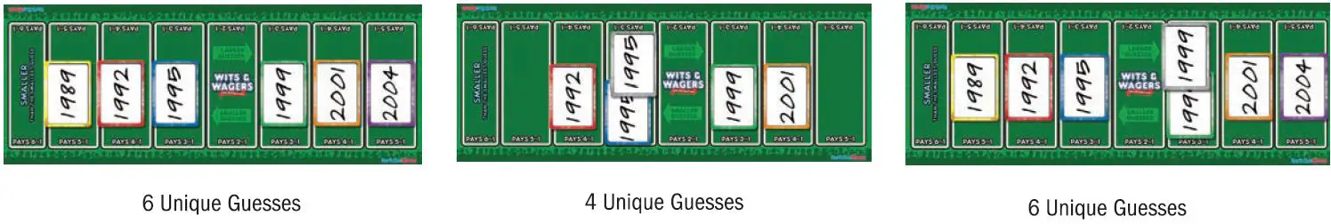 Odd Number of Unique Guesses: The middle guess goes in the "Pays 2 to 1" payout slot.