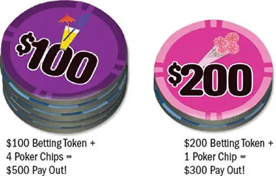 Poker Chips must be stacked underneath a Betting Token so the Banker knows who placed each bet.