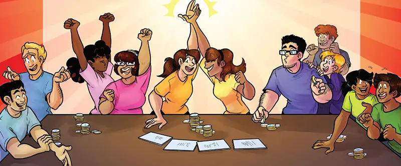 Gather LOTS of friends - more than 10 is perfect. Split into teams of 2 - 3, move the chairs out of the room, stand around a large table, and get ready to cheer when your team hits the jackpot!