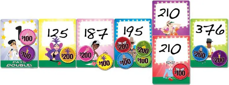 Two Poker Chips to the player(s) that placed a $200 Betting Token on the winning guess.