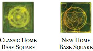 Objects (such as stone blocks, thornbushes, etc). cannot be created in a wizard's home base square. Walls however may be created along the edges of a wizard's home base square. The appearance of a home base square varies depending on whether it is on the classic side or the new side of a sector board, as seen below: