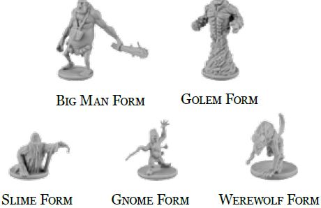 When the transformation ends, the player replaces the transformed figure with his wizard figure. The possible transformed figures are as follows: