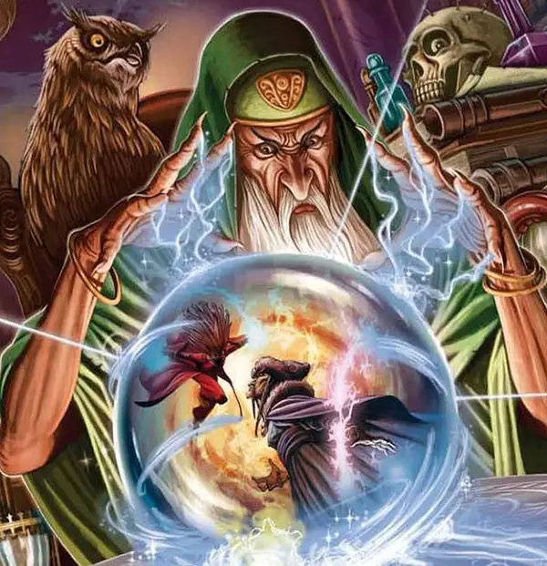 Example: The blue wizard casts "Fireball" at the green wizard. The green wizard casts "Gnome Form" on himself, giving him a chance to evade the attack on a die roll of "1" or "2".