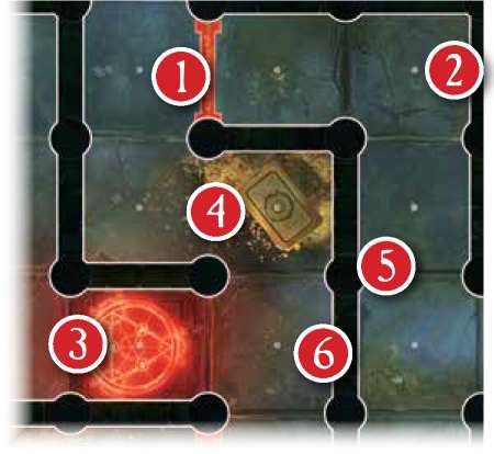 Portal markers indicate squares on the edges of the labyrinth that are connected to each other when it is not obvious that they are. Place each portal marker on a plastic stand.