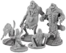 The plastic wizard figures represent the players' wizards during the game and are placed on the colored bases to indicate which player controls which wizard.