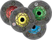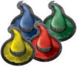 These markers correspond to the player colors and represent the treasures that the wizards are trying to steal from each other.
