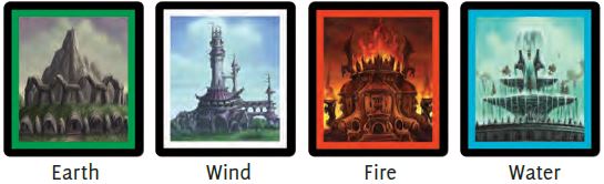 When bidding for ingredients in a city, players may use all of their element cards. in all non-city areas, the landmark type (monument, tower, temple, or fountain) dictates the single type of element that players may use to bid for ingredients (see below).