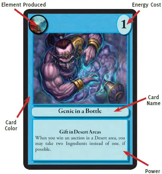 Energy Cost - The upper right-hand corner of a Spell card shows how much energy it takes to maintain that Spell each round. During the Energy Phase (explained in detail below), players remove the number of Energy cubes shown on the card.