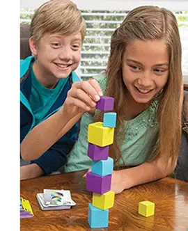 Be the first player to play all of your cards as you successfully add blocks to the tower.