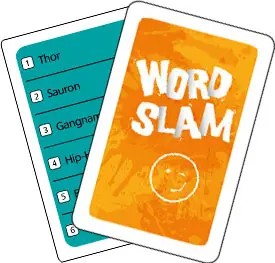 Introductory game: Inexperienced players can familiarize themselves with the Word Slam cards and gameplay by playing your first game without the blue, gray, and turquoise categories of answer cards.