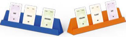 Each team receives the 105 story word cards and the two cardholders in the team's color: Blue or Orange.