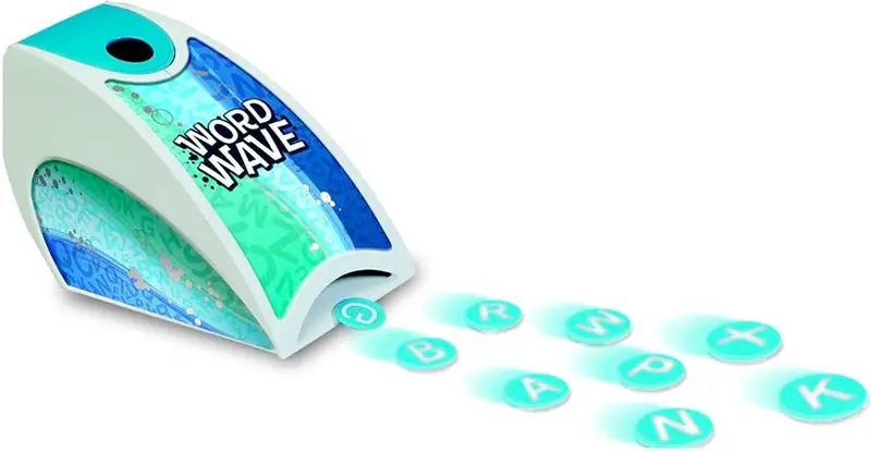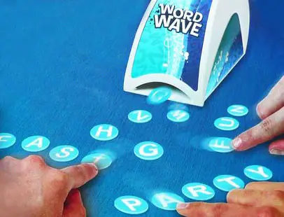 Slide the Game Mode switch to the desired setting. After five seconds, letter tiles will begin to slide out of the Word Wave onto the table.