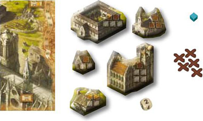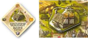 Place the Bridge building project onto the space intended for it on the game board (it covers up the old, decrepit wooden bridge). You may work on this building project right from the beginning of the game.