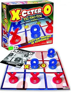 Unlike TIC- TAC-TOE - which often ends in a tie - the X's and 0's in X-ceter-0 are numbered, so play keeps going until someone breaks the tie!