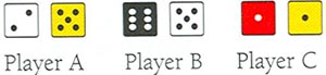 The River was a lucky roll for Player A; she now has a 1-through- 5 straight! She only bets 10, hoping that Player C will "sweeten the pot" by betting more. Player C, with a full house, calls her bet. The round is over.