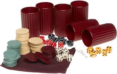 In each hand, win poker chips by having the best five-dice combination. (To win the game, be the last player remaining).