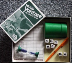But you can find Word Yahtzee online, at toy stores, or garage sales. It is a fun and inexpensive way to engage the whole family and get people interacting. It's that simple. So grab some friends and enjoy.