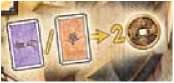 You can sell either one Bonus Card OR one Action Card. The card is placed face down at the bottom of the appro- priate deck. For this, you receive 2 Mon from the bank.