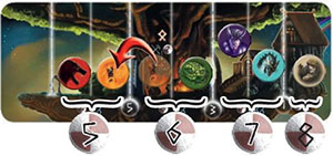For instance, the I active God can put the Vanir on the first square and either take 2 Vikings or move the Valkyries. Otherwise, he can move the Vanir one square forward: another God will be able to use his action to apply the effects corresponding to this new position.