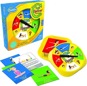 The youngest player spins the Spinner and follows instructions according to the Spinner Guide (turn to back).