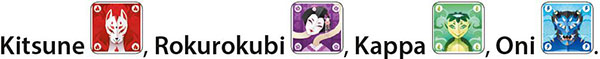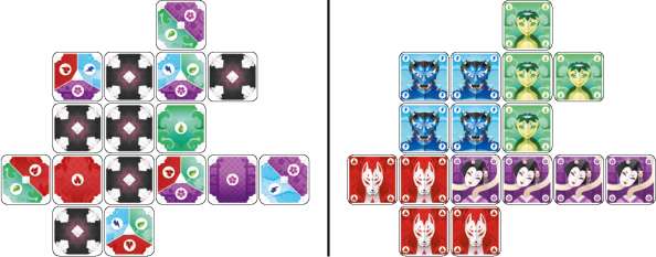 Affinity Cards: they indicate that the shown Yokai families must be adjacent by at least one of their respective Yokai at the end of the game.