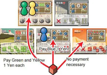 If there are any Trading Houses owned by other players in the Area in which the action is being carried out, the owner receives 1 Yen from the bank.
