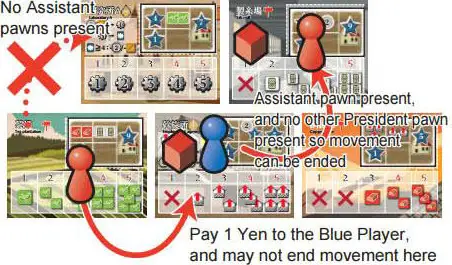 Place 1 Assistant pawn into 3 different areas: Choose 3 different areas, and place Assistant pawns from their hand to the areas one by one.