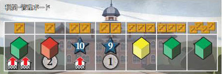 A number of Assistant pawns on the Customs Man- agement Board has been placed (2 Players: 4; 3 Players: 5; 4 Players: 6)