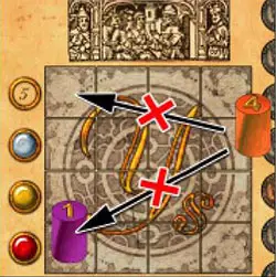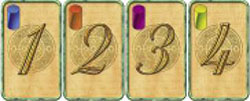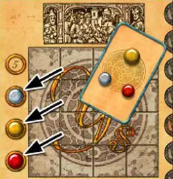 ![]() Example : the card features a white gem. You have put one on line 1. The other two stones are placed on lines 2 and 3. |
