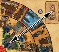 Highest bidder on the market: The player with the highest total of brokers in the market must now change the quotation of one of the stones. The player chooses a gem and makes its quotation either move up or go down one step. If several players have the same broker value in the market, draws are settled as they are in the city.