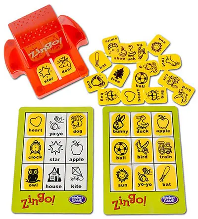 Your child's language skills are developing rapidly, and playing ZINGO! is a fantastic opportunity to help him/her increase vocabulary.