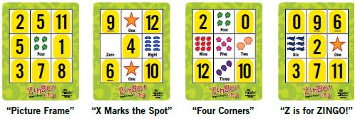 For this reason, the green sides of the ZINGO! 1-2-3 cards feature images and number words. ZINGO! 1-2-3 draws upon a young child's growing interest in number play as well as his/her natural love of matching games to create a fun-filled, enriching play experience.