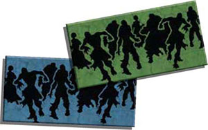 EXAMPLE: A group of four Walkers, one Fatty, and three Runners move toward a group of Survivors. The Zombies can take two routes of the same length, so they split into two groups.