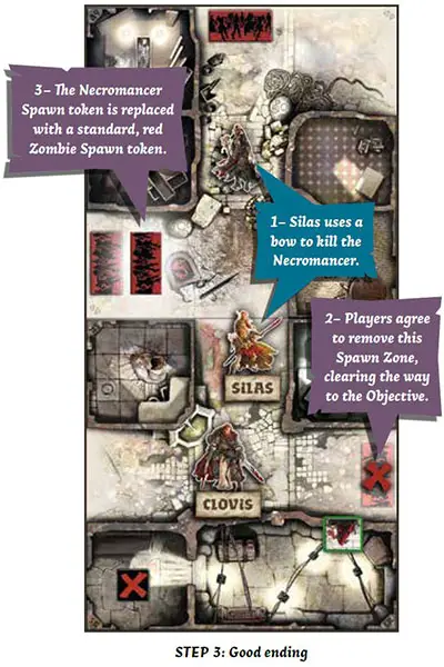 Killing a Necromancer slows the invasion. If you manage to kill it, choose a Spawn Zone (including its own Necromancer Spawn Zone) and remove it from the board. If the Necromancer Spawn token is still on the board after this removal, replace it with a standard one.
