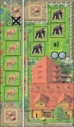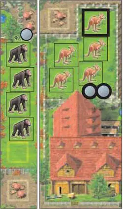 Example: a player places a kangaroo in the last space of a 5-space enclosure and earns 2 coins.